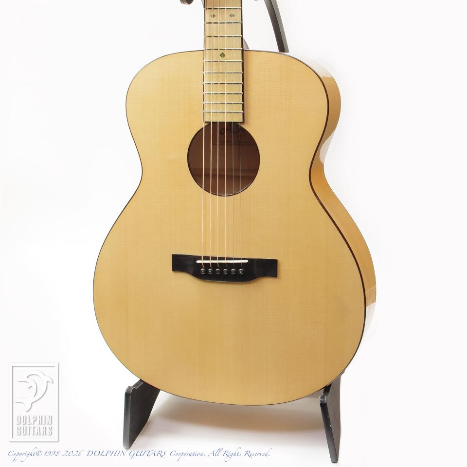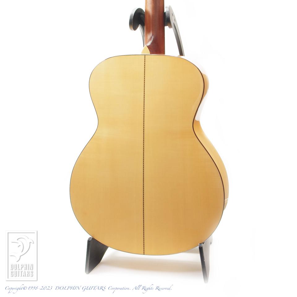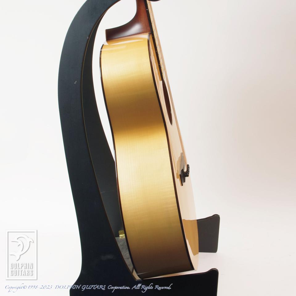 ボディサイズやスケールはOMサイズ。やや厚胴となっており、サウンドの厚みや程よく甘いトーンが印象的で、余分な硬さもない素晴らしいサウンドの個体です。この材構成でイメージするサウンドを良い意味で覆してくれるかもしれません。