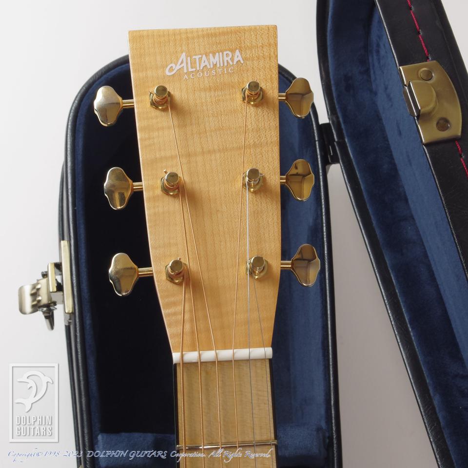 クラシックやフラメンコ、ジプシーギターを主として製作しているAltamira Guitars。本器はレアな鉄弦モデルA650をベースに、サイド&バックや指板にはメイプルが使用されたカスタムモデル A650M。