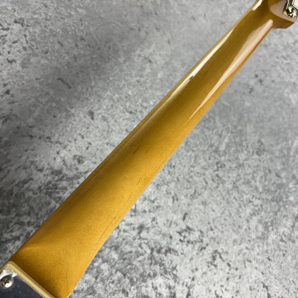 ブラックのブロックインレイとバインディングが、独特の70年代のルックスをエンハンスします。