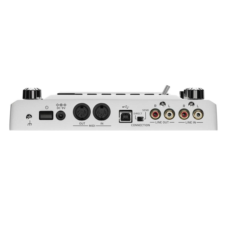 接続端子:OUTPUT L/R(ピン・ジャック)、LINE IN L/R(ピン・ジャック)、(マイク/ギター)端子(6.3mm TRSフォーン・ジャック、平衡(MIC時) / 6.3mm TRSフォーン・ジャック、不平衡(GUITAR時)、(ヘッドホン)端子(6.3mm ステレオ・フォーン・ジャック)、MIDI IN/OUT、USB(タイプB)