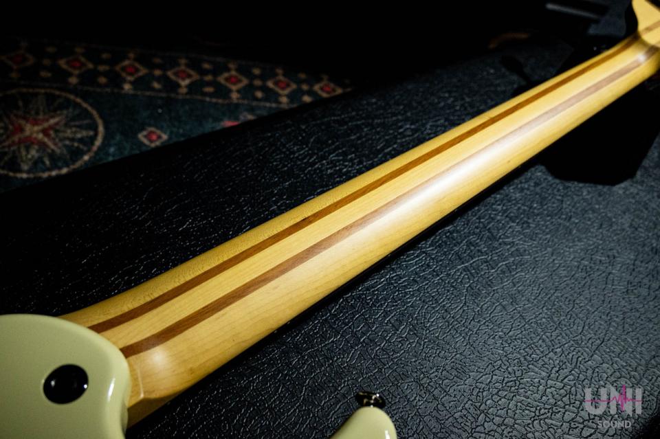 ネックにはメイプル&マホガニーで構成される5ピースネックを搭載し、歯切れの良いシャープなサウンドを実現。反りやねじれを防ぎネックを常に演奏しやすい状態に保つと共に、メイプルのタイトなサウンドの中にマホガニーの持つ温かみのあるサウンドが加わります。