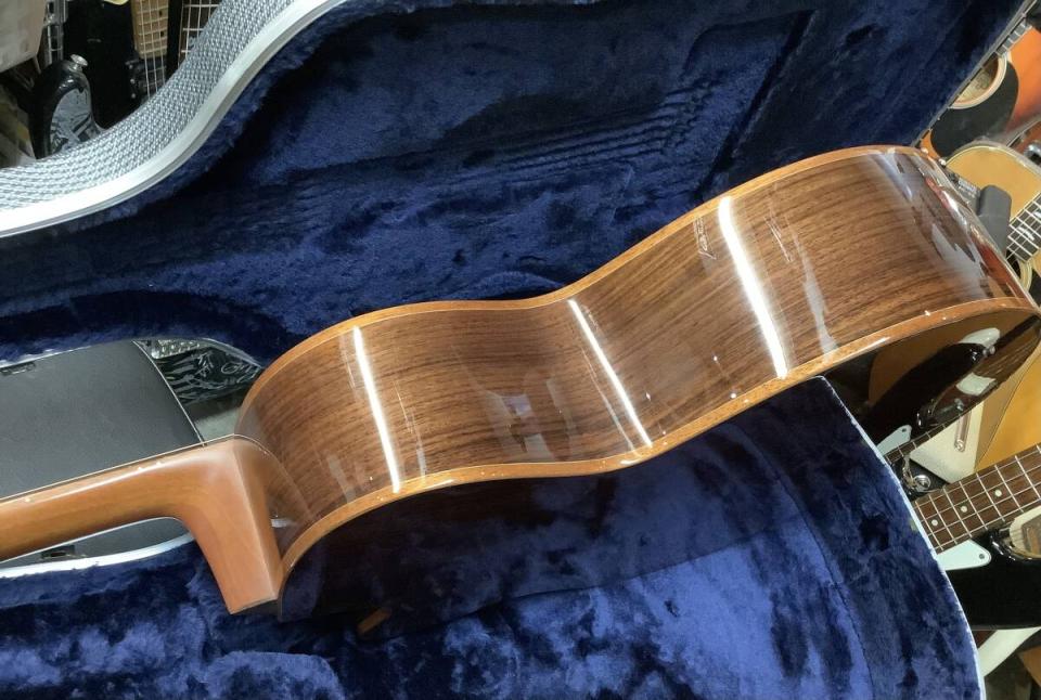 20年間弾き込んだような鳴りのいい本体。音量のあるアディロンダックスプルース、弾き手を包み込むようなエコー効果のふくよかなサウンドです。