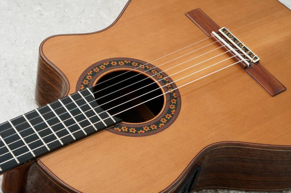 ブリッジとサウンドホールに施された装飾はホセ・ラミレス1世からか数えて5代目となるアマリア・ラミレス自ら考案したもので、女性ならではの花をあしらったエレガントなデザインとなっております。