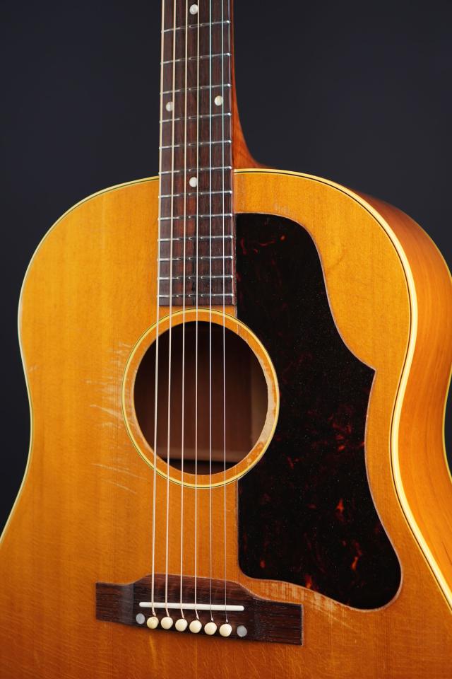 ビッチリとウェーザーチェックが入った塗装面は程良く飴色に色焼けし、ヴィンテージらしい良い顔のJ-50です。