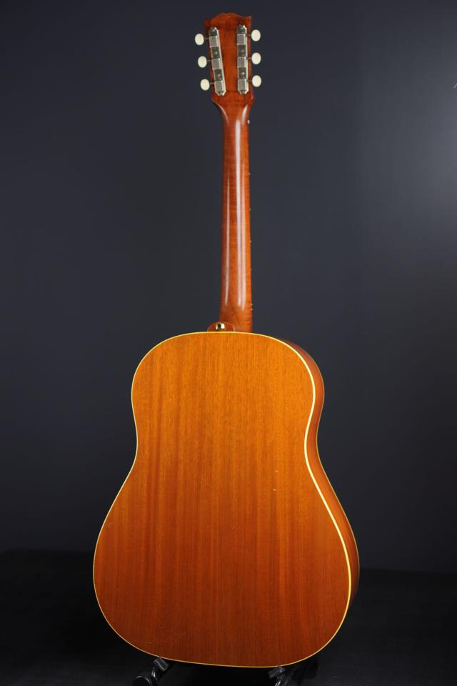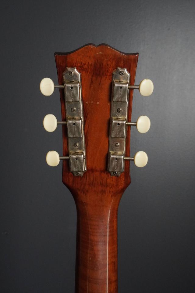 ナチュラルカラーのJ-50らしく整った木目で、マホガニーブラウンのフィニッシュも明るい色合いが50年代ならではの雰囲気となり、クリーム色に焼けたボディバインディングとも良くマッチしております。