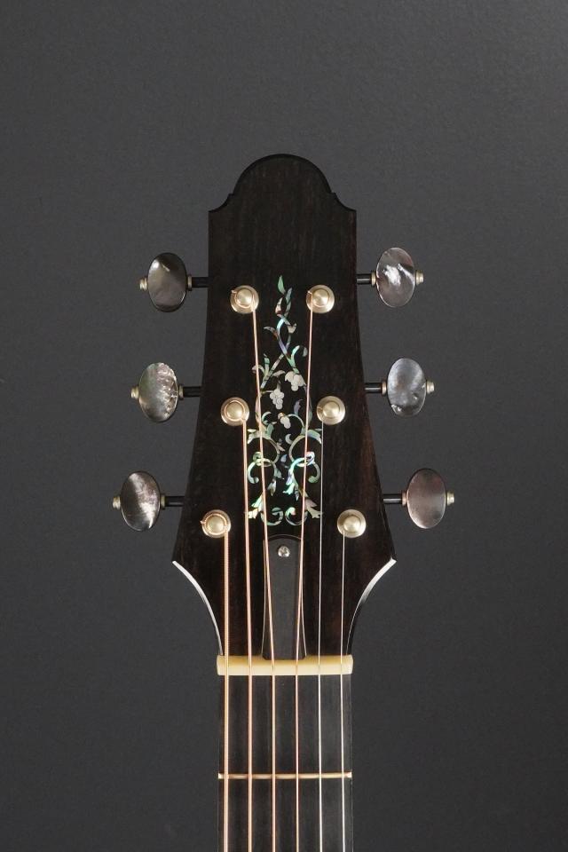 本機は、特別な材の組み合わせ、カスタムインレイ、カスタムロゼッタと、アバロンのトップボーダーと、プレゼンテーション仕様の豪華スペックです。