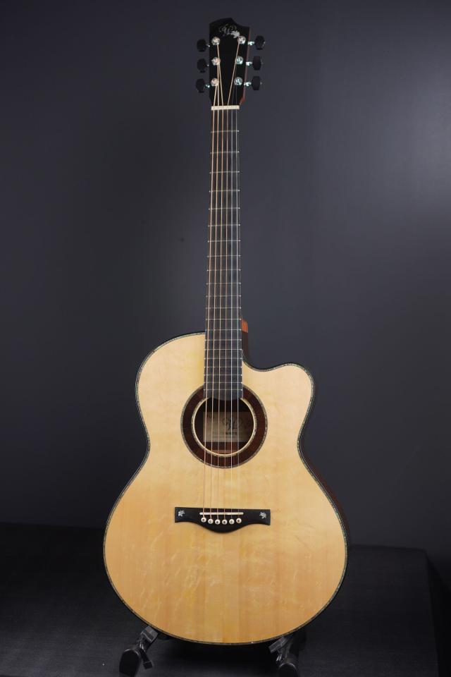 OMより大きいサイズで、演奏性とサウンドバランスの良さから一番人気のあるPremier Cutawayですが、このモデル製作頃からやや薄型になり、よりレスポンスの良さが感じられる、サウンドクウォリティーの良さが際立ってきた時期の逸品です!