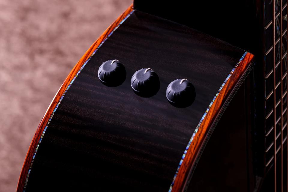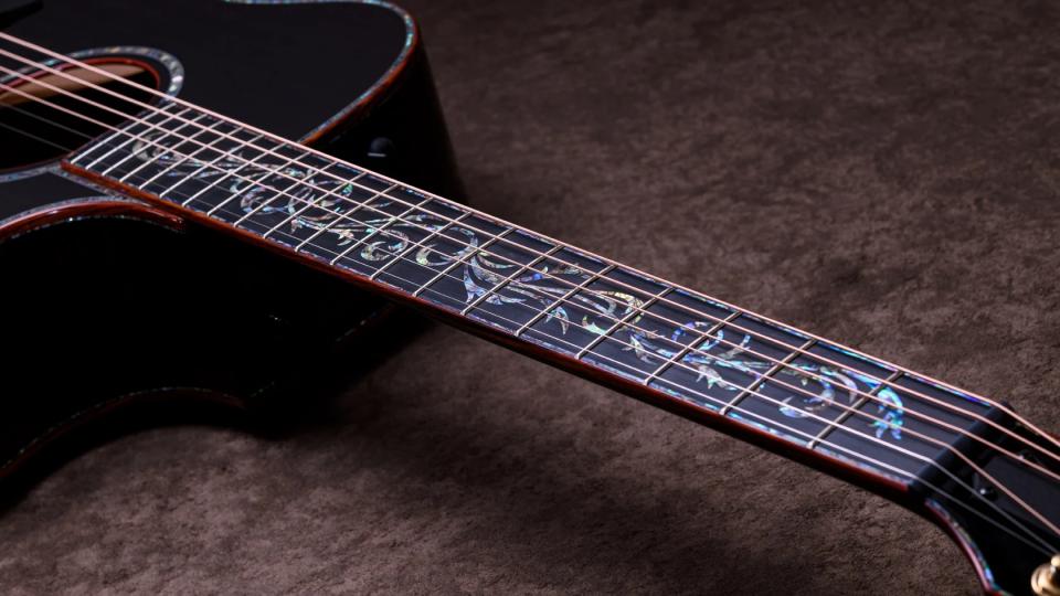 蔦が絡み合うような優雅な「Byzantine inlays」が、指板・ヘッド・ブリッジを華やかに彩り、材の美しさと見事に調和しています。