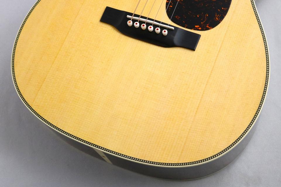 類似モデルである000-28 Standardとはボディのサイズは同じですが、000シェイプのスケールが約632mmなのに対し、OMシェイプは約645mmと長く設計がされています。
