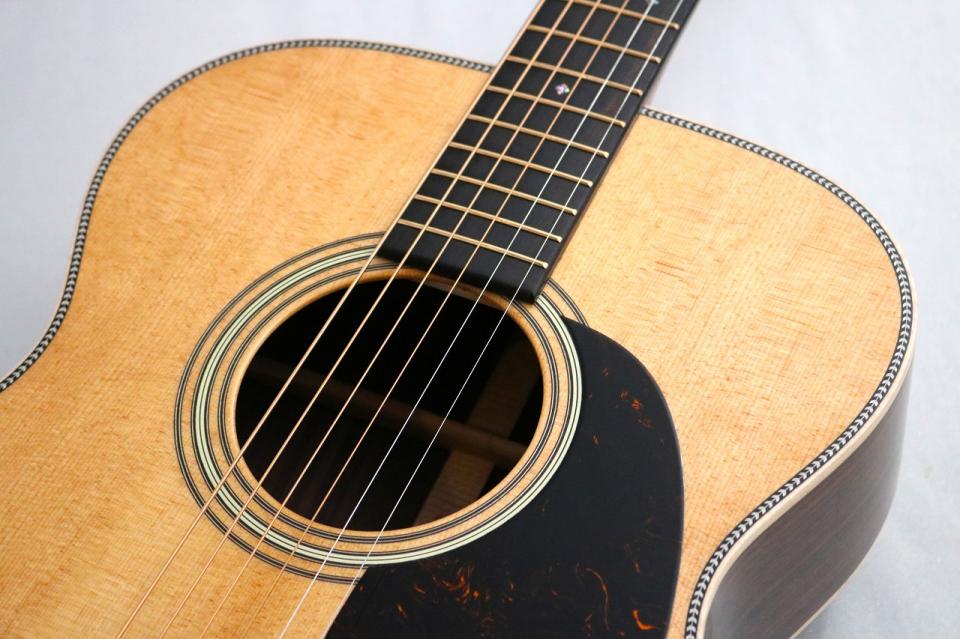 1930年代から1940年代の木材状態の再現を可能にしており、000シェイプの煌びやか且つバランスの取れたサウンドはそのままに、ヴィンテージギターを彷彿とさせる乾いた鳴りと抜群の音抜けが特徴となっております。