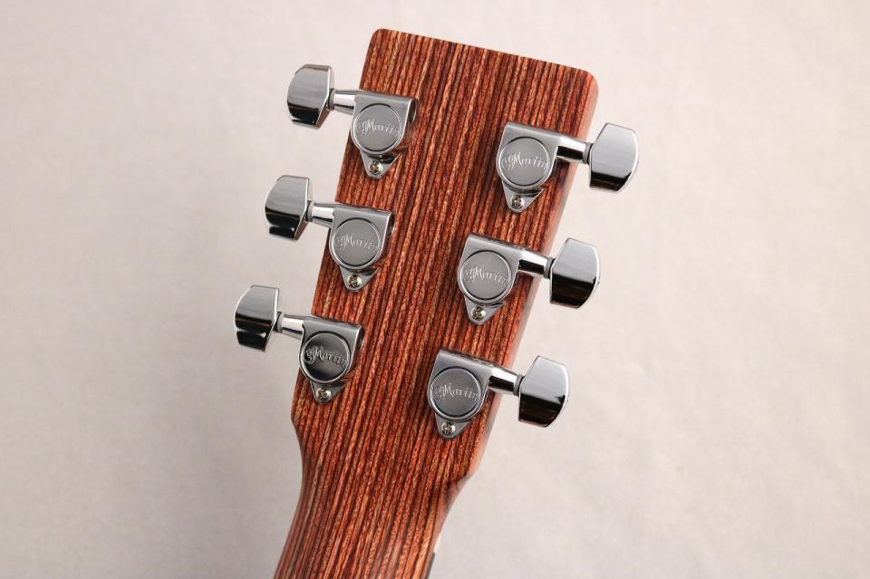 HPLは木の繊維と樹脂をMartin独自の特殊な方法で圧縮をすることで一枚の板にした特殊合板材となっており、木材よりも頑丈且つ木材の天敵である湿度や気温による環境変化に強いという性質があるので、外へも持ち出しやすいというメリットがございます。旅行先でもギターを弾きたいという方に非常におすすめです!