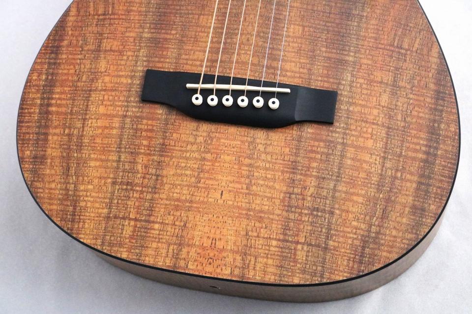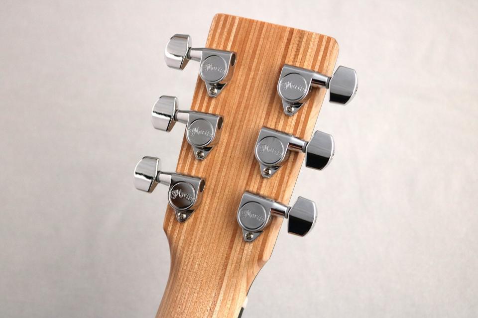 HPLは木の繊維と樹脂をMartin独自の特殊な方法で圧縮をすることで一枚の板にした特殊合板材となっており、木材よりも頑丈且つ木材の天敵である湿度や気温による環境変化に強いという性質があるので、外へも持ち出しやすいというメリットがございます。旅行先でもギターを弾きたいという方に非常におすすめです!