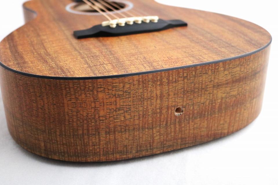 どなたでも抱えやすい小さなボディサイズはちょっとした時間での気軽な演奏に最適と言えます。大人からお子様まで幅広い層にお楽しみいただけるモデルとなっております。