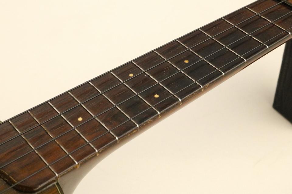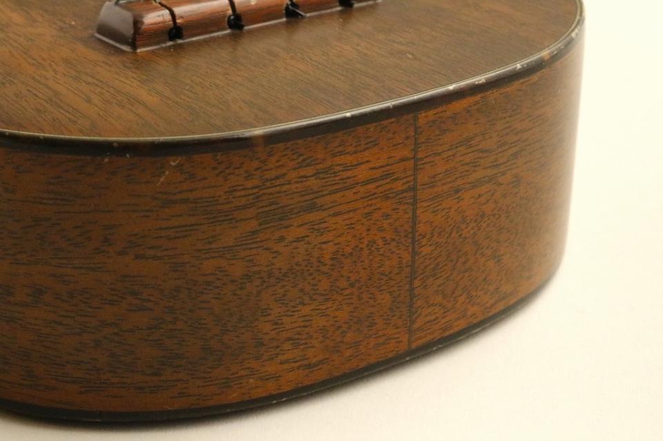 当個体はバーフレットとデカールロゴ仕様の1930年代製前半に生産されたとみられるマーチンのStyle1 ソプラノサイズモデルです。オールマホガニーのボディとネック、ブラジリアンローズウッドを採用した指板とブリッジの仕様となっております。