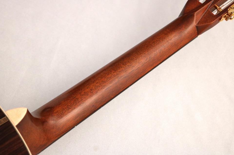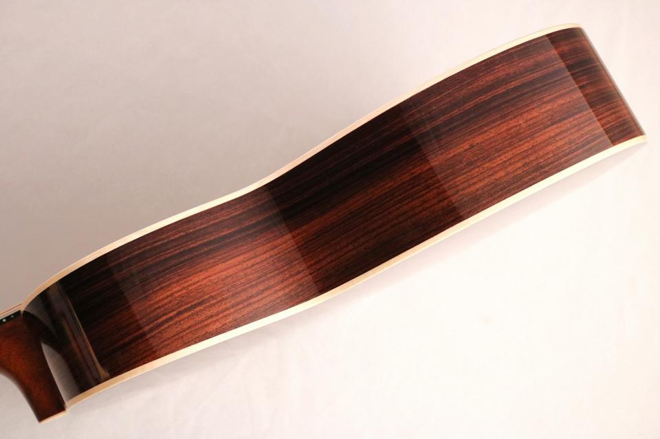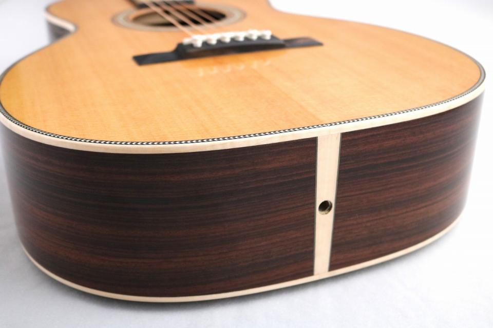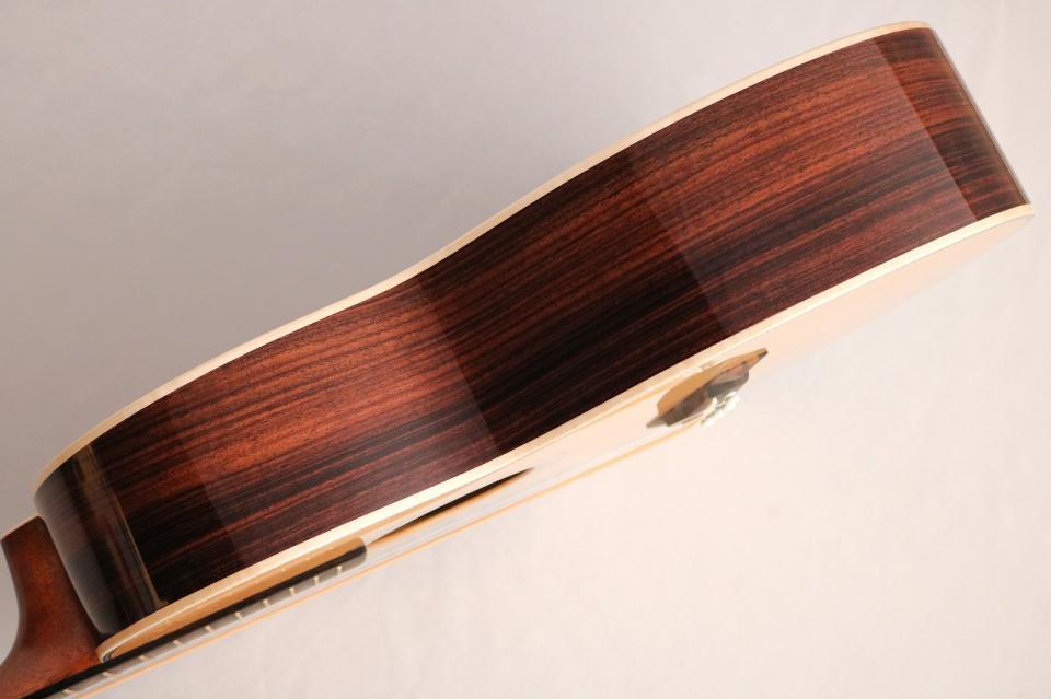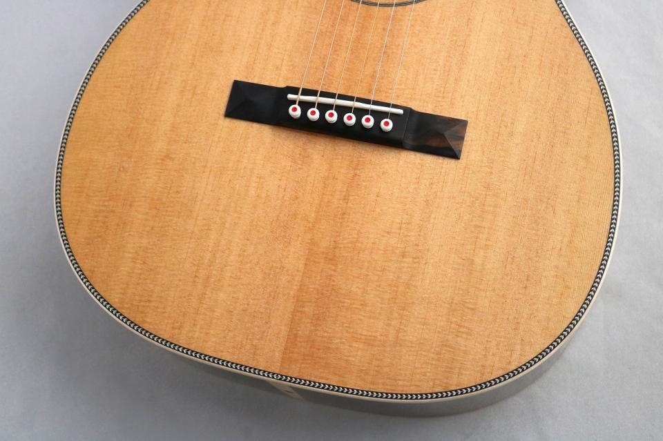 特徴的なボディはクラシカルな12フレットネックジョイントの00サイズとなっており、小さめなサイズによる圧倒的な抱えやすさに加え、コンパクトながら14フレットジョイントに比べボディ面積が広いためサイズからは想像できない豊かな音量を備えております。