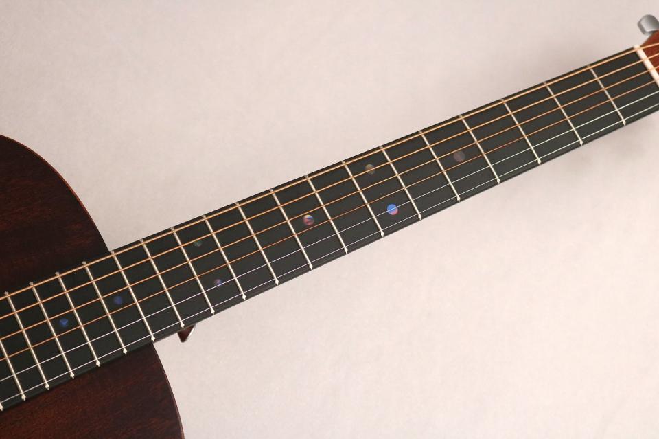 弦長はフルサイズの000シェイプモデルなどと同じ約632mmのスケールでコンパクトながらしっかりと張りのある安定したサウンドとなっております!