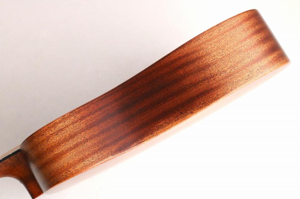 ボディ材はスプルーストップとサペリ材による組み合わせ。サペリ材による明るく温かいサウンドは一度聴くと心地よい気分にさせてくれます!