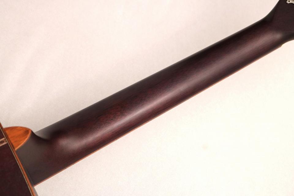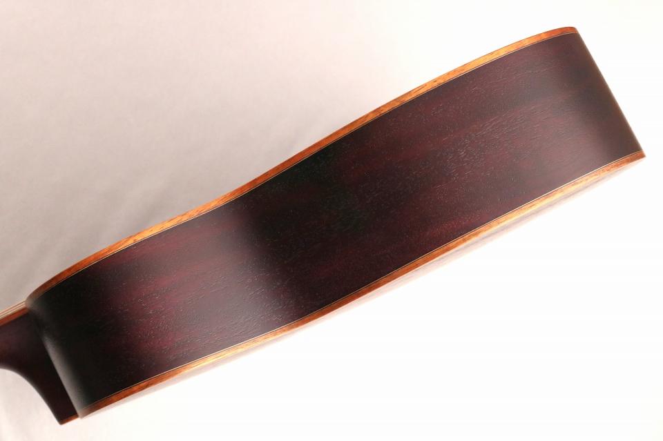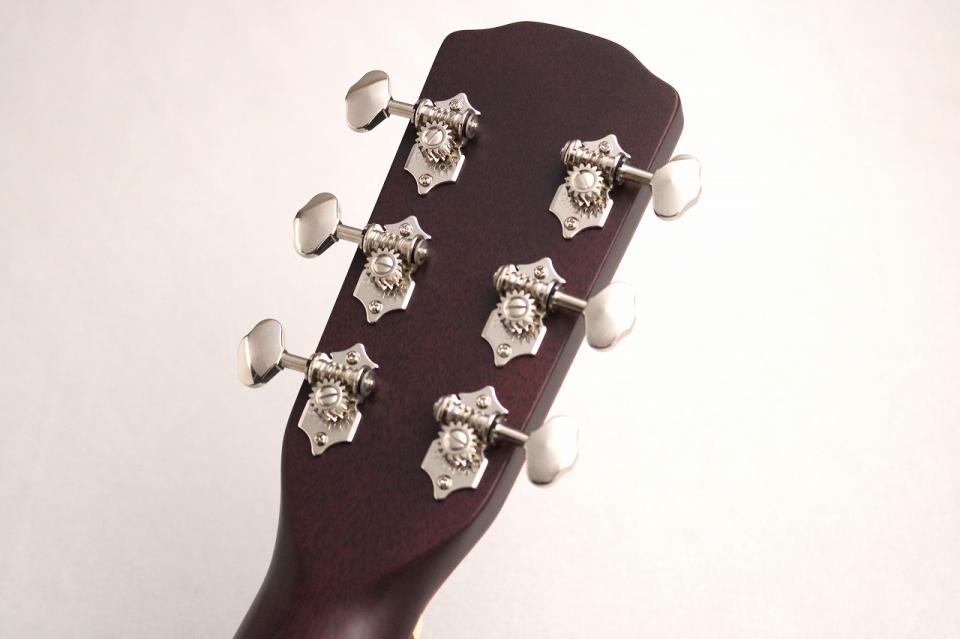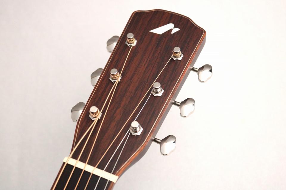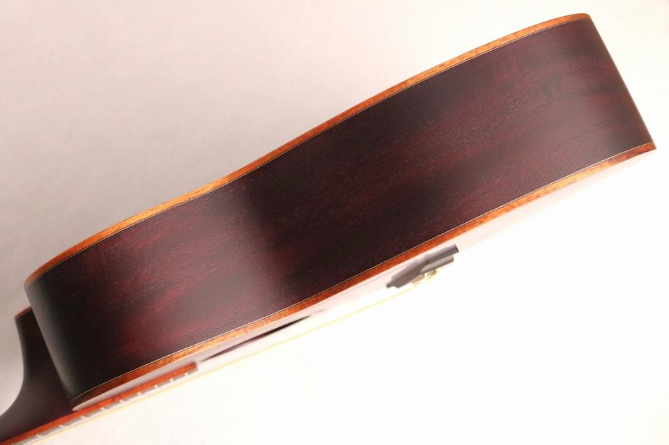サウンド面に関しては、トップにイングルマンスプルースを採用。通常のスプルースに比べ柔らかい特徴があり、弦振動をより効率よく増幅をしてくれるため軽いタッチでも豊かな音の広がりを感じることが可能です!