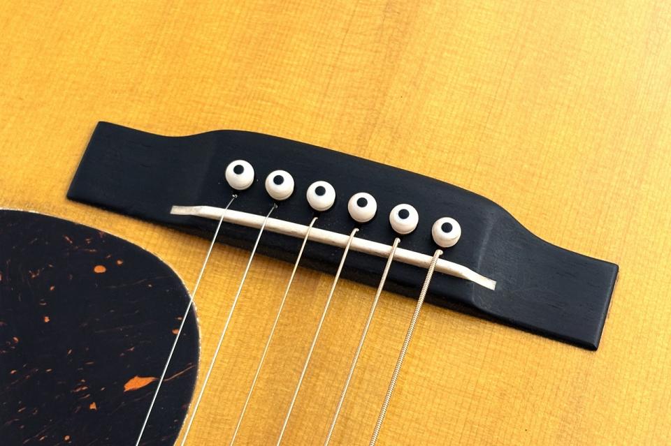 サドルはロングサドル仕様となっており、ブリッジとの接地面積が現行品のショートサドルに比べ広いため、弦振動をより効率よくボディへと伝達してくれております。