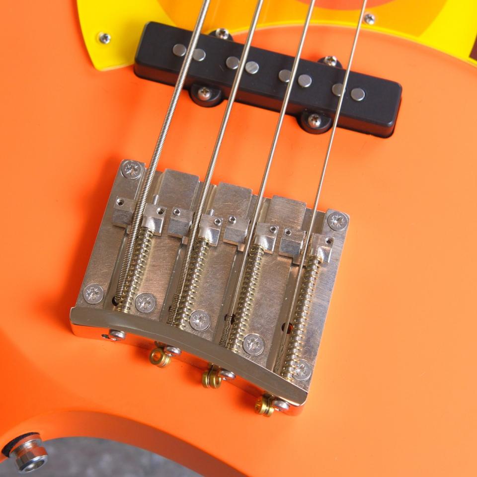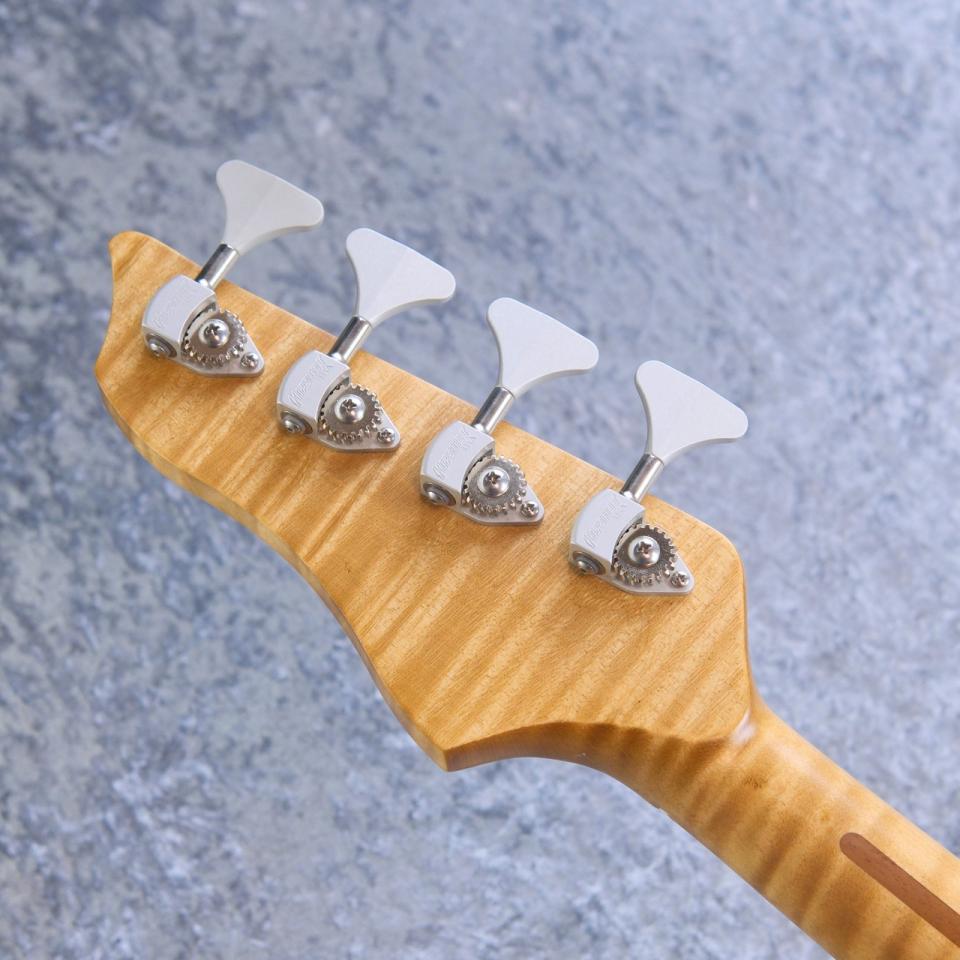 特徴的なブリッジを搭載しており、表通し、裏通し共に選択可能で、現在は4弦のみ裏通しのセットアップになっております。