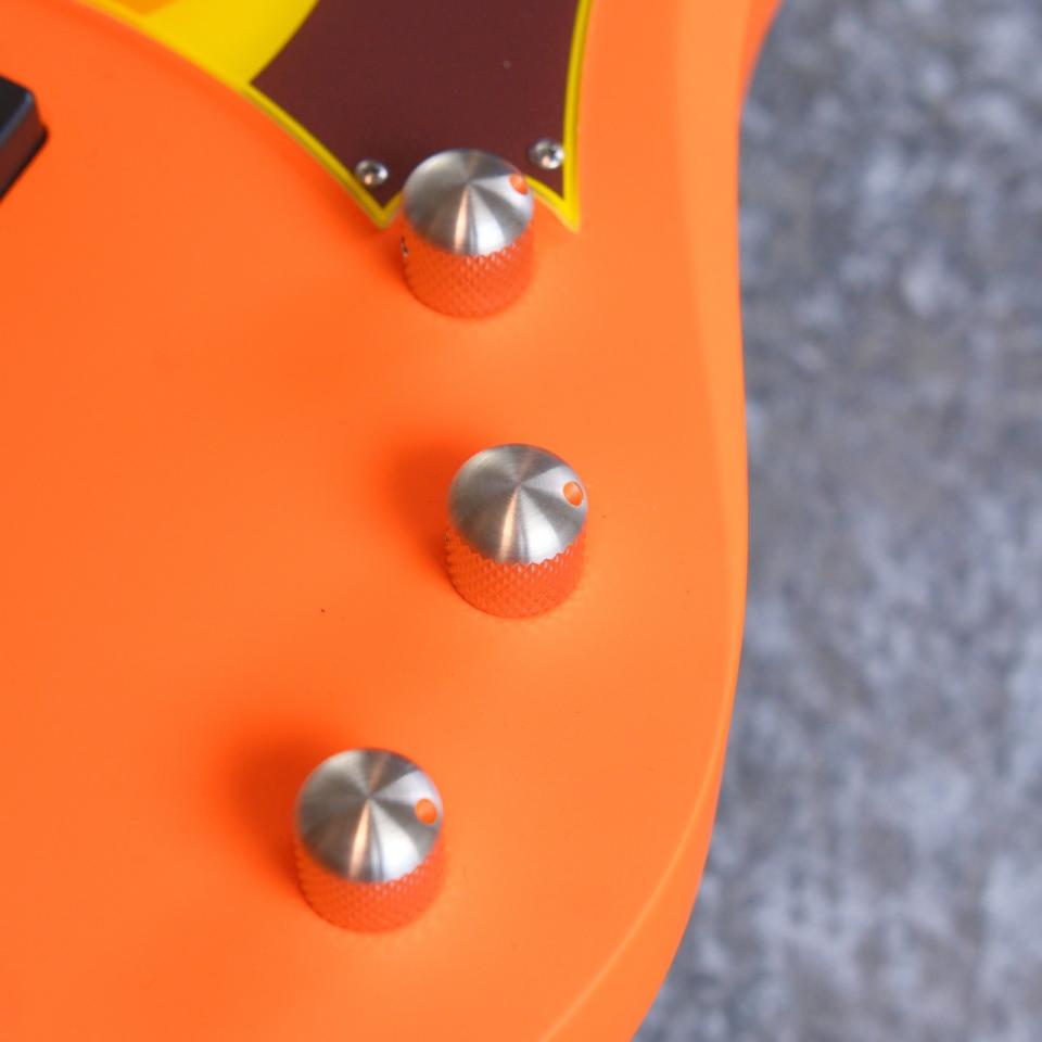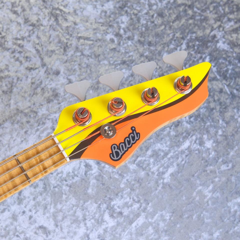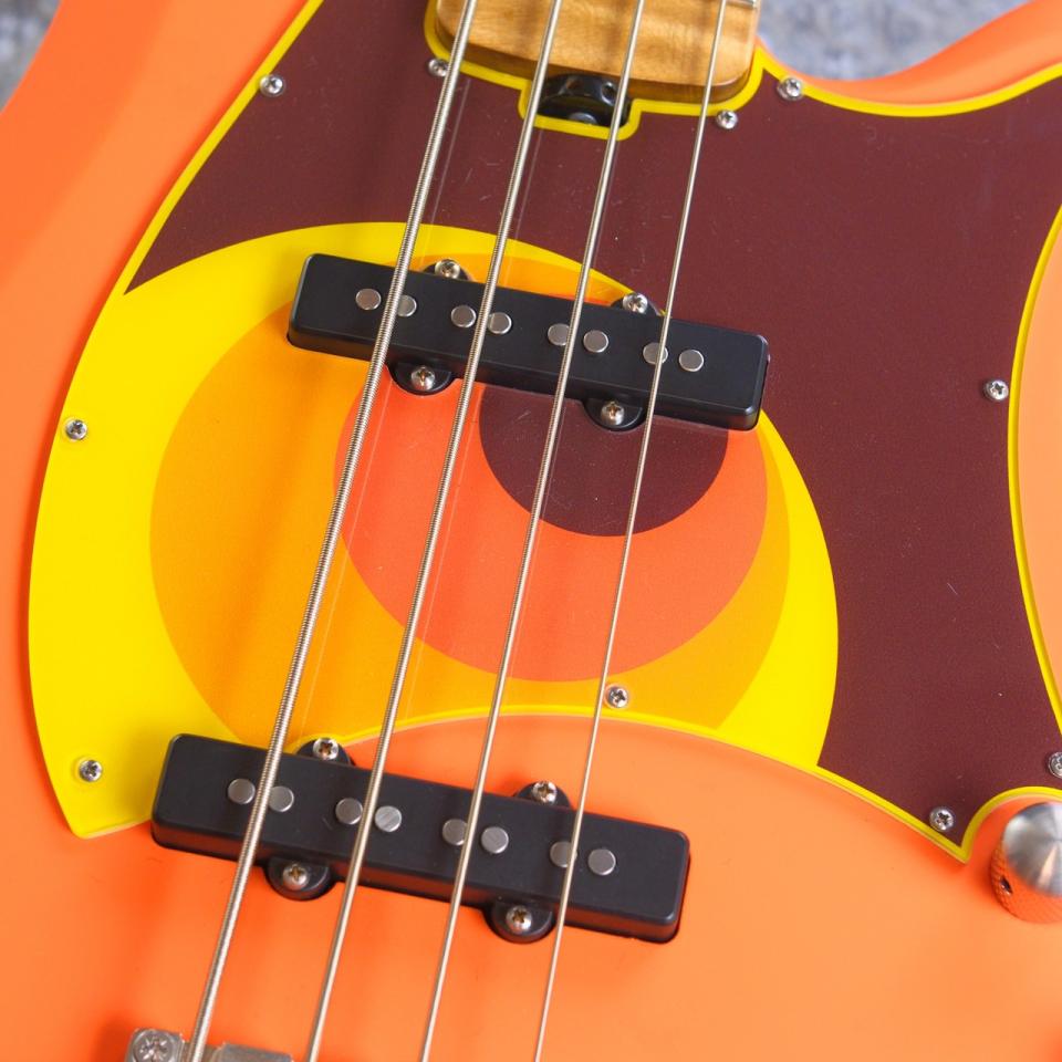 ポップなカラーリングが印象的で、こちらは日本やアメリカ製の楽器では見ない発色。