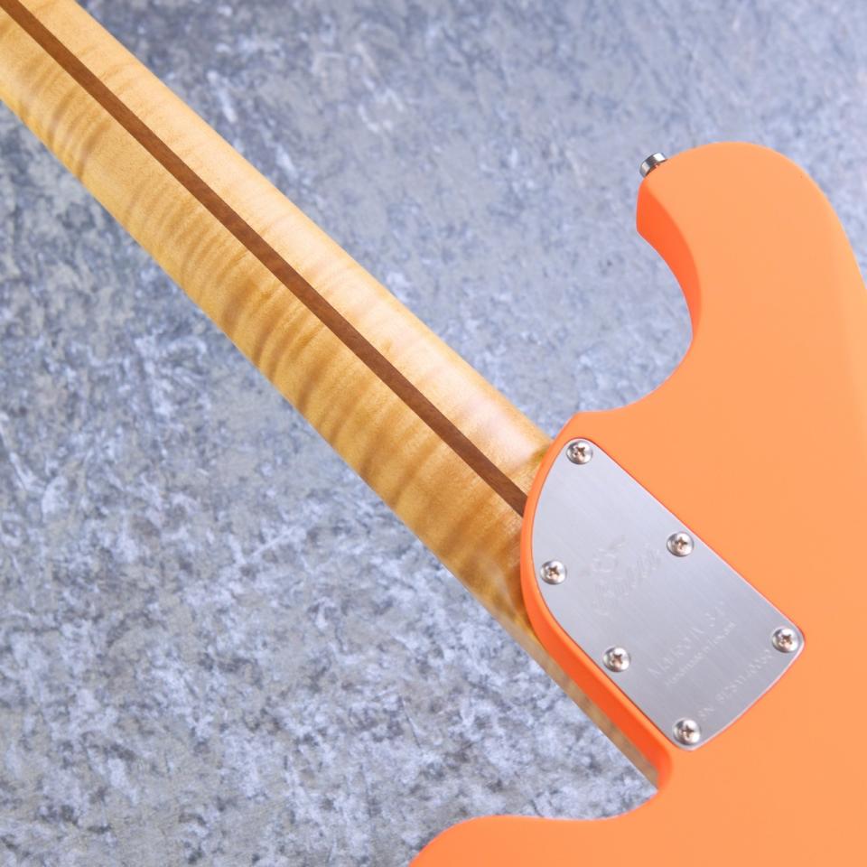 美しいフレイムメイプル材のネックは、サイドポジションやインレイデザインも凝っており、芸術の国イタリアらしさを感じます。