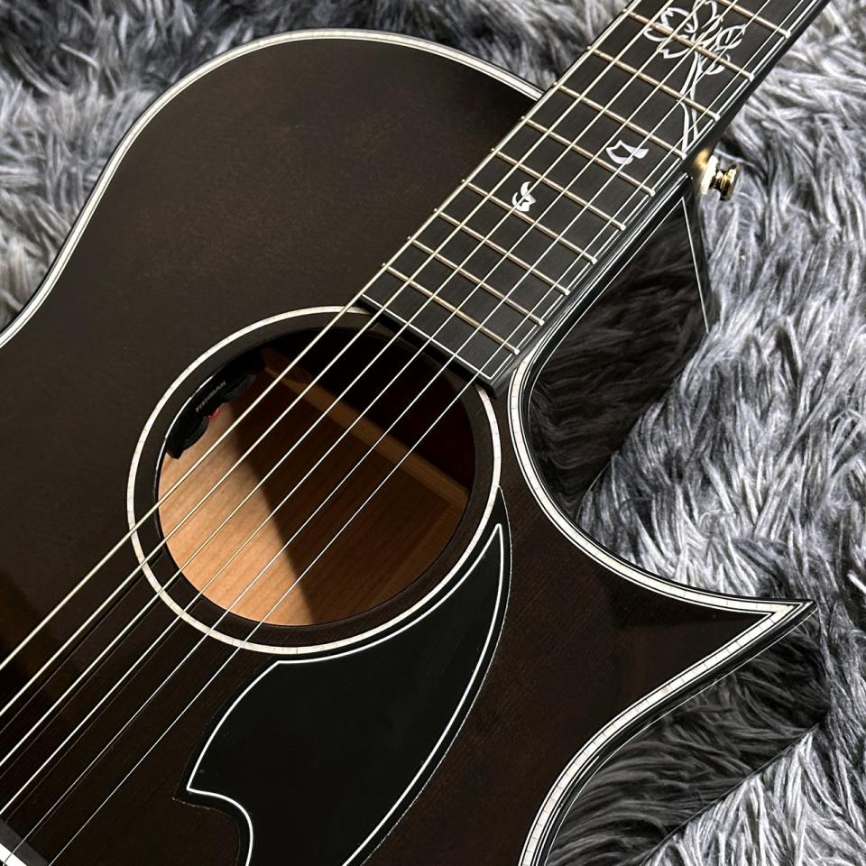 桜の花びらをイメージしたピックガードも鋭さと躍動感を感じさせるシャープなデザインを採用。全体として、和の情緒とモダンな力強さを兼ね備えた独自のスタイルを確立しました。