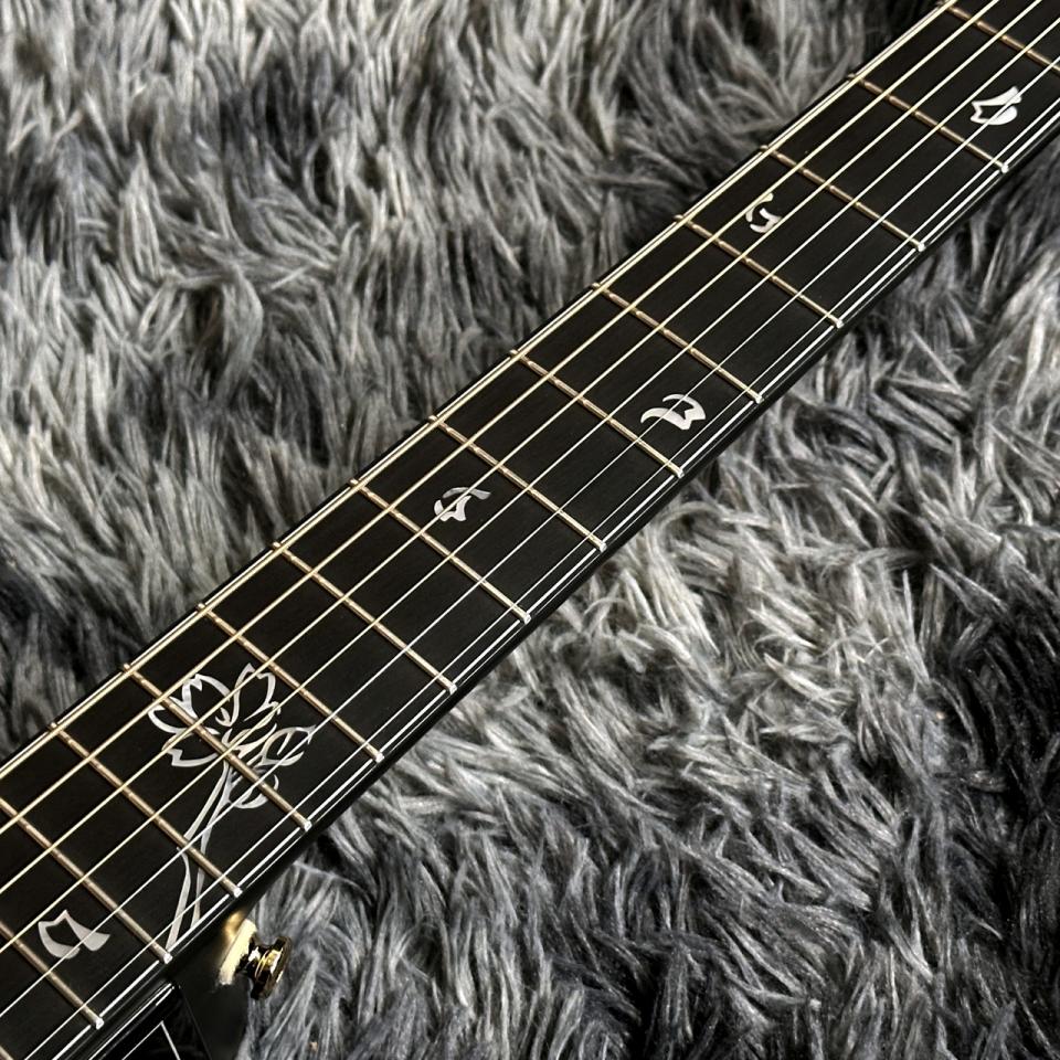 ヘッドと指板には、白蝶貝などの素材を用いたインレイ加工で水墨画を思わせるアートワークを施しています。