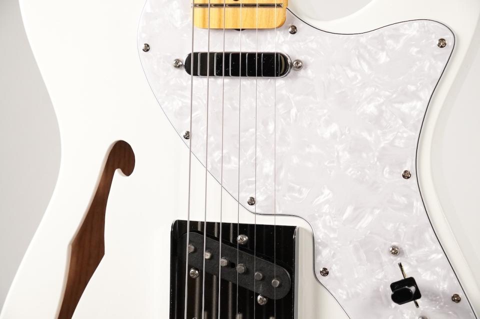 テレキャスターのキレとセミホロウの空気感が融合した、オープンで味わい深い一本。