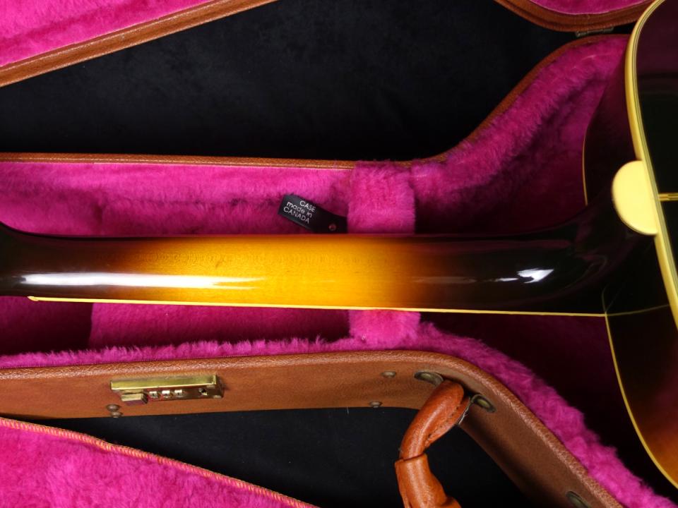 DOVEでは最近見かけない珍しいビンテージサンバーストカラーを採用した一本となっており、Cherry Sunburstカラーとは違いシックな出立となっております。また製造から30年以上経っているとこも渋いルックスの一役買っております。