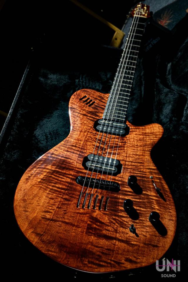 ピックアップにはLGX用に開発されたオリジナルハムバッカーを搭載、素晴らしいアコースティックサウンドと専用のカスタムプリアンプなどゴダンの粋を結集したトップモデルです。