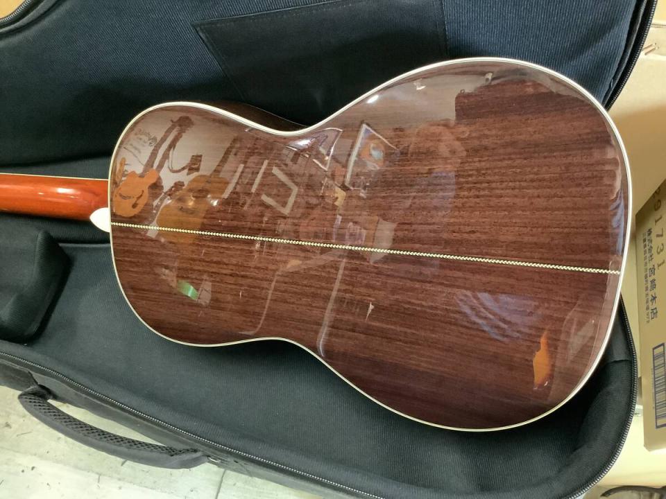 横裏はインディアンローズウッド単板のオール単板ボディ。