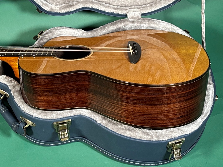トップはトリファイド・シトカスプルース、サイド&バックはローズウッド、ネックはサウスアメリカン・マホガニーを採用。指板とブリッジにはエボニーを使用しています。スケールは650mm、ナット幅は44mmです。独自デザインのカッタウェイにより、ハイポジションでの演奏性にも優れています。
