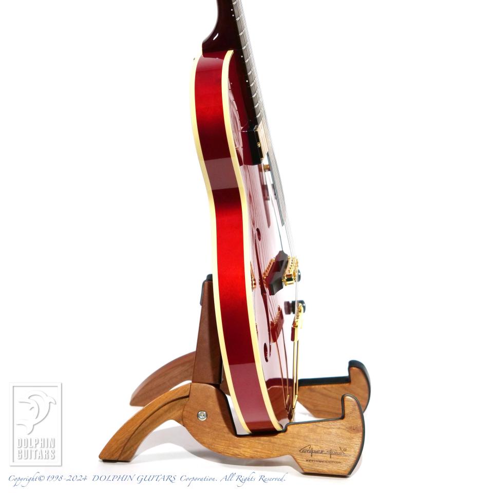 通常(約70mm)より薄いボディ厚(約44mm)は、抜群の取り回しと反応性を誇り、アンプで鳴らす際のハウリング対策としてもより効果的なボディ厚となっています。