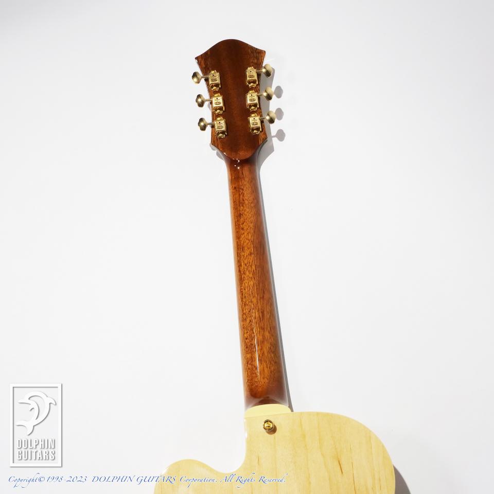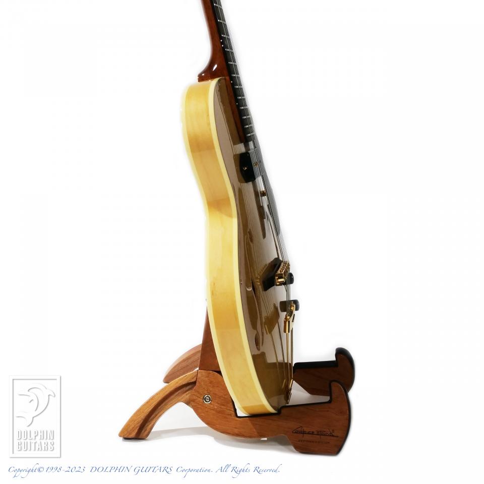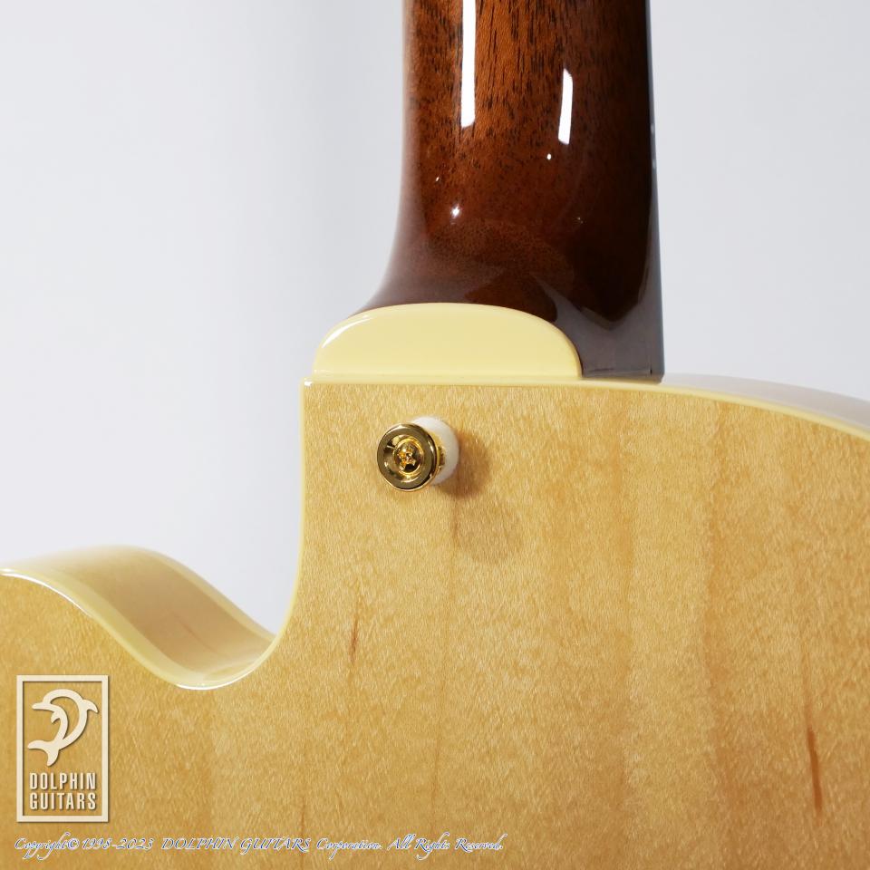 通常(約70mm)より薄いボディ厚(約44mm)は、抜群の取り回しと反応性を誇り、アンプで鳴らす際のハウリング対策としてもより効果的なボディ厚となっています。