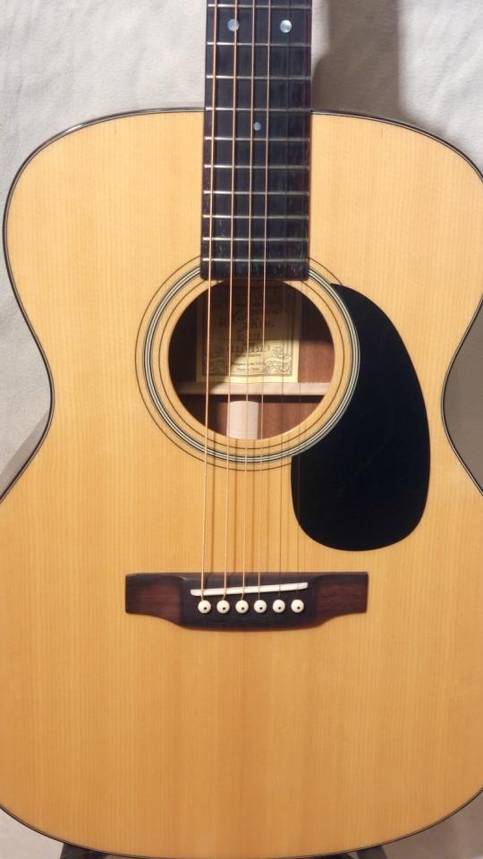 こちらは、OOO-18モデルで、トップはアディロンダック・スプルース、サイド&バックはアフリカン・マホガニー、オール単板モデルです。
