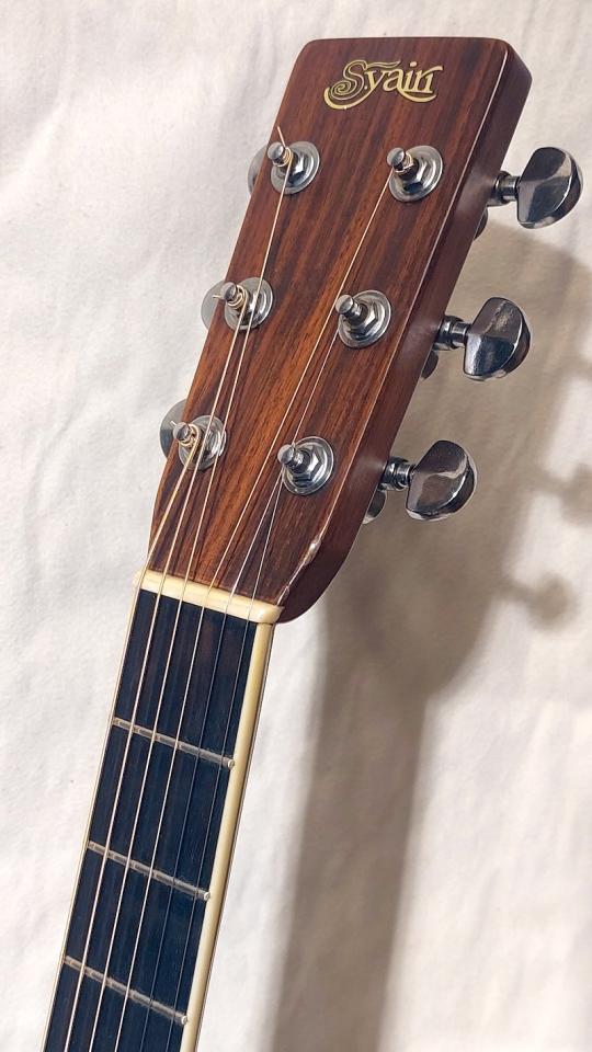 トラスロッドはノンアジャスタブル、ペグは“S.Yairi”のロゴがプリントされた恐らくGOTOH製。
