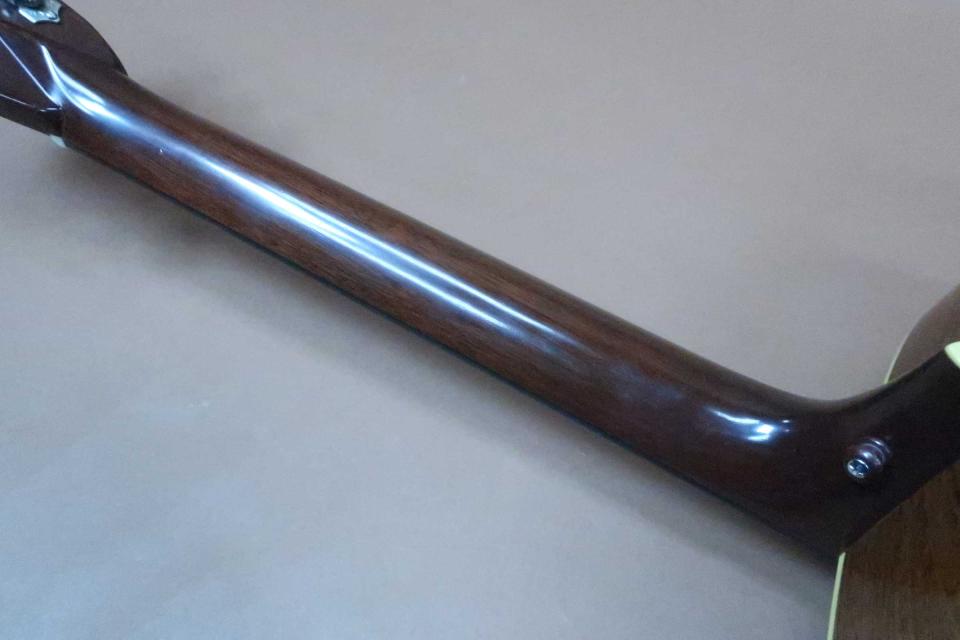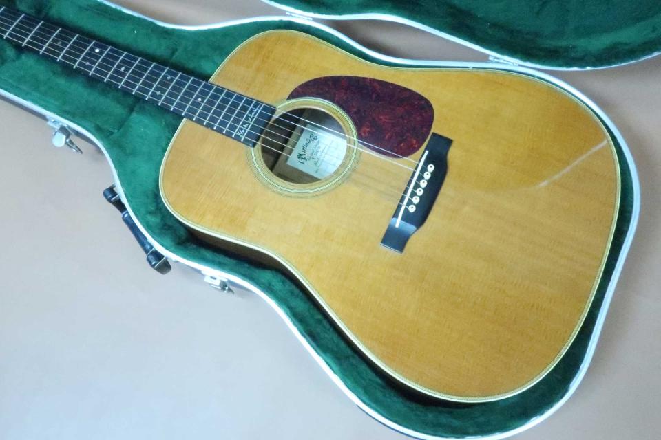 状態は使用感も少なく、ペグのみホワイトボタンのウエバリーペグからヴィンテージタイプのウエバリーペグに交換されていますがネジ穴なども同じで違和感はありません。その他はオリジナル・コンディションを保っており、トップも光に翳して分かるぐらいの極軽微な塗装上の打コンが左上部のバインディング辺りに1個と左トップ下に僅かに極小の打コンぐらいで素晴らしく綺麗な状態をキープしています。サイド&バックも薄い擦り傷ていど、ネック裏も素晴らしく綺麗で演奏性も問題がありません。フレットも殆ど減っておらず高さが有り9分目程度は残っていると思います。またネックヒールにストラップピン装着済みですがピックアップの取付はありません。弦長約645.2mm、ナット幅約42.9mm、弦高も12F6弦で約2.3mm、1弦約1.7mm、サドルの余裕も約4mmあり、ネックの反りや元起も見られずトラスロッドの余裕も見られネックを含めプレヤビリティも良好です。マーティンハードケースも付属しています。 中古市場でも滅多に出ないコレクターズギア。サウンドもマーティンのハカランダ・サウンドを堪能して頂けるお勧めの逸品です。まだまだ価格高騰が予想される、D-28 ヴィンテージ・スペック/ハカランダ仕様です。是非この機会にご検討を頂ければ幸いです。