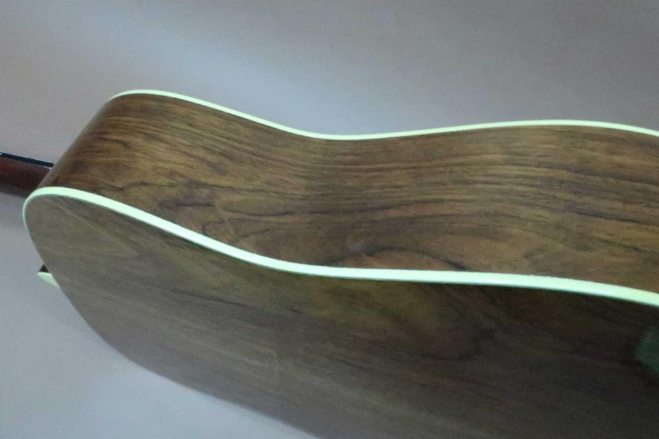 サウンドは、フォワードシフテッド・スキャロップドXブレイシングが採用されおり、豊かな音量と押し出しのパワー感が凄く野太く締まりの有る低域に輪郭の際立った跳ねる様な粒立ちの良い中域とハカランダ特有の華やかで艶やかな高音域の倍音も心地良く響きく逸品。強めのタッチから軽いタッチまで繊細で表現が豊かに歌い上げてくれます。