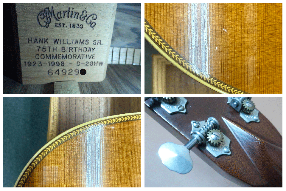 JAPANESE1998年に世界150本限定で販売されたハンク・ウィリアムスのシグネチャーモデル!彼が所有する、1944年製 D-28を元に製作されサイド&バックにはワイルドな杢目のブラジリアン・ローズウッドの逸品。
