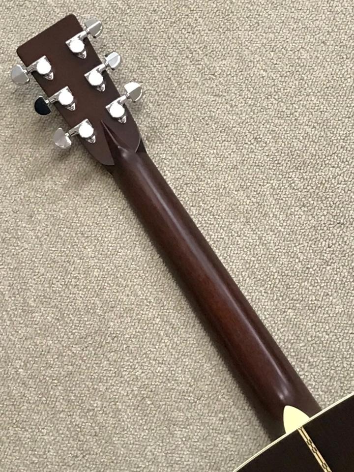 ある意味、足して2で割ったサウンドは興味深いもので、とはいえキャラクターに大きく影響与えるのはバック材ですので、軽やかなマホガニーサウンドが基調です。 そこにエッセンス的に加わるインディアンローズのダークな重さが独特な世界観を構築しています。 試奏は私ひとりでしかやってないのでわからないですが、ひょっとするとインディアンローズの効能として、かためられたサイド材の力で音が前に飛びやすいかもしれないですね。