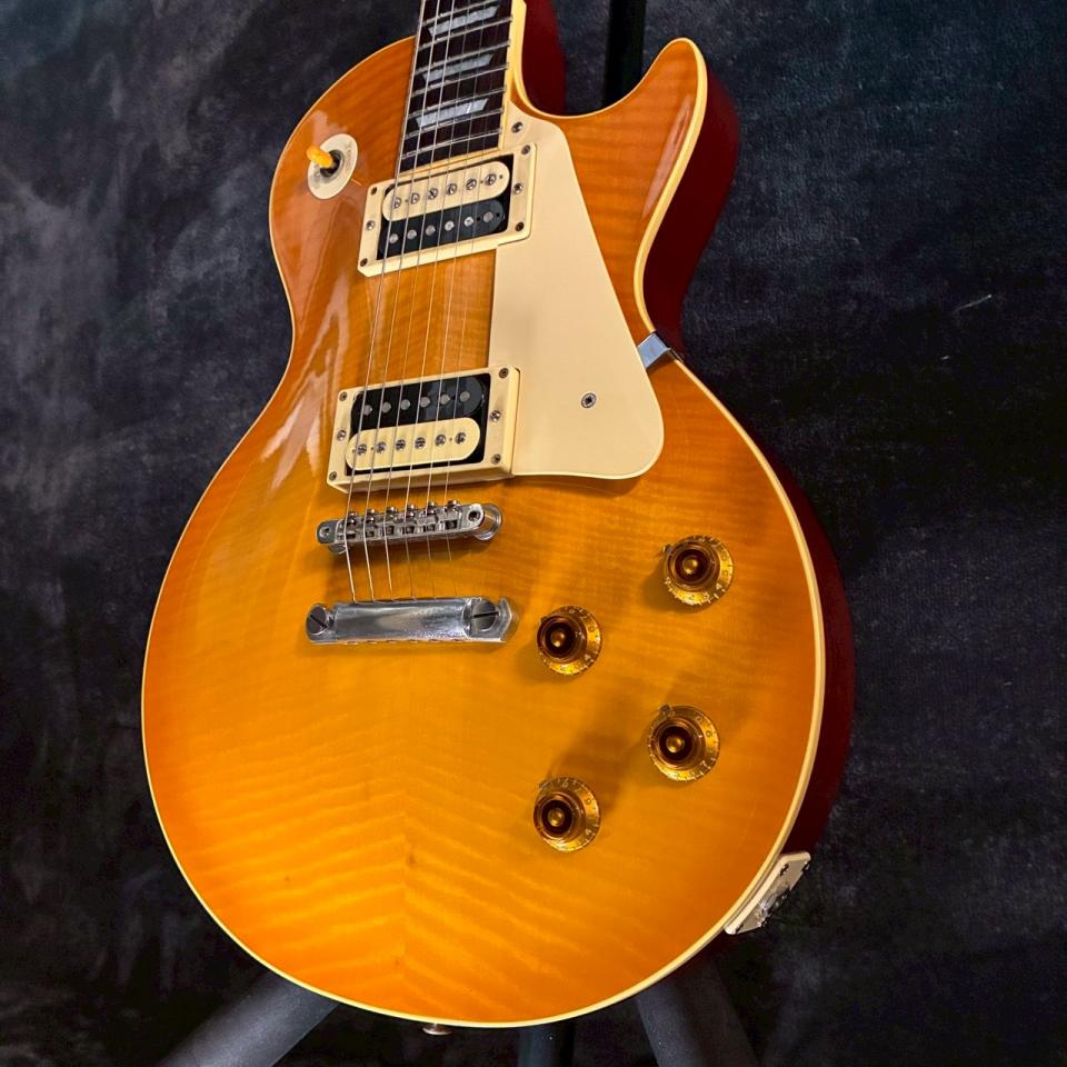 本モデルは1958年スタイルのGibson Les Paulをモチーフとして製作されたとされ、クラシックなレスポールの魅力をベースにしながら、国産ならではの丁寧な仕上げと実用性が加えられています。オールドスタイルへの敬意を感じさせつつ、現代でもしっかり使えるバランスの良さが魅力です。