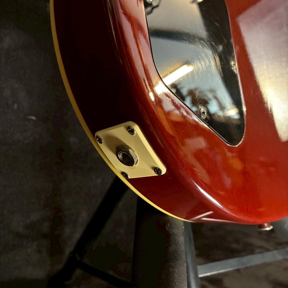 リアピックアップは交換されており、実戦的なアップデートが施されています。年代を考慮すると全体として綺麗な状態を保っており、ヘッドロゴに一部削られた形跡は見られるものの、大きく雰囲気を損なう印象ではありません。