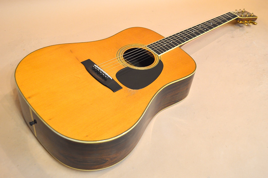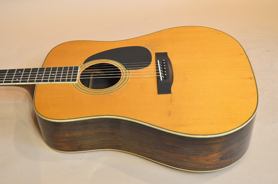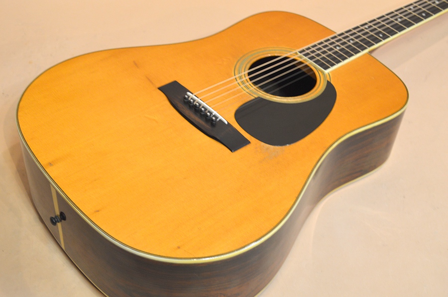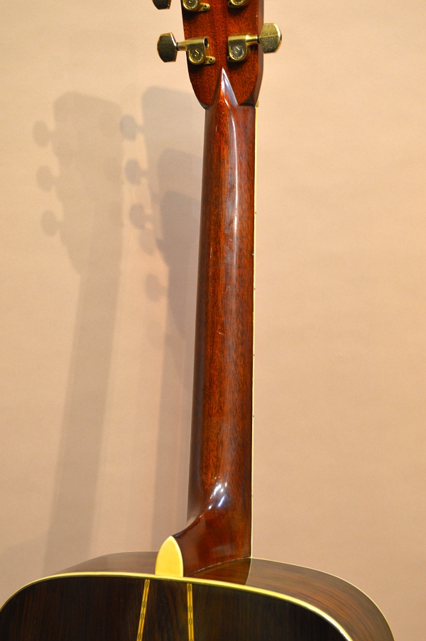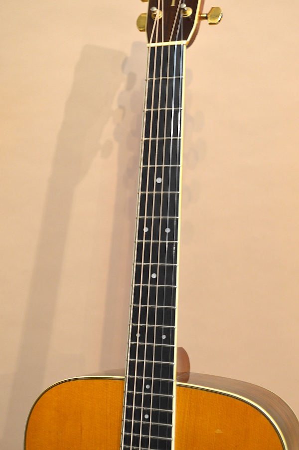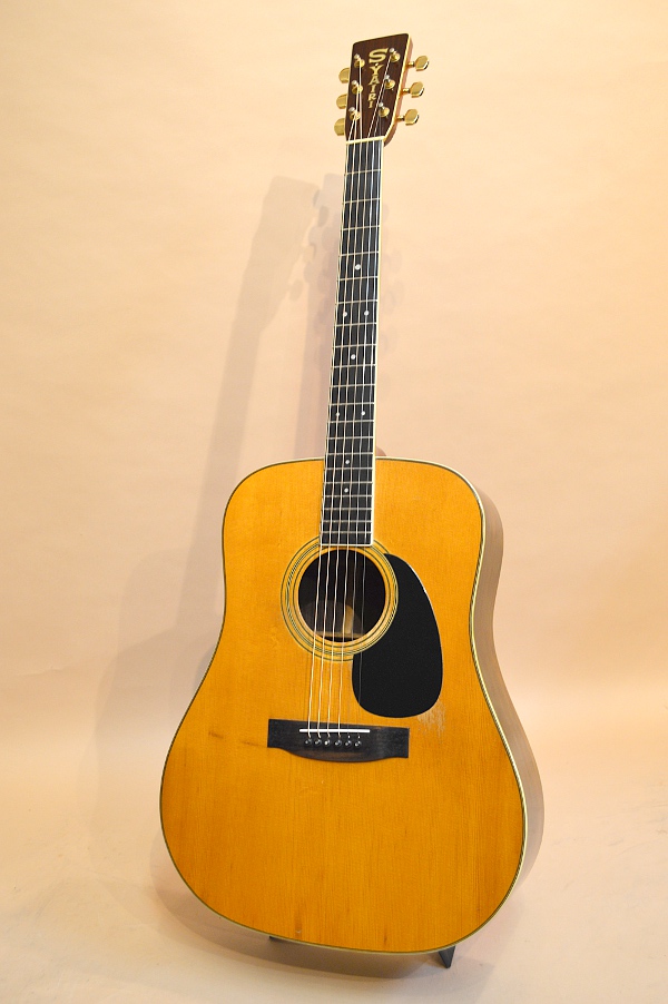 ジャパン・ビンテージの中でもとりわけ人気が高く、多くのコレクターを有するS.ヤイリ。その作りの確かさとサウンド・クオリティーは、数多存在した日本のアコギ・メーカーの中でもトップ・クラスで、多くのプレイヤーを魅了するのもうなずけます。今回入荷の1本は、そんなS.ヤイリの上位機種YD-306。YD-306の初期スペックは、デカール・ロゴ&アバロン・ロゼッタでしたが、75年にこの縦ロゴ&アバロン・ロゼッタ無しのバージョンに仕様変更されます。YD-306に縦ロゴが使われているのは75年~76年の途中まで。また、76年後半になるとSIDE&BACK材はローズウッドに仕様変更していきますので、この縦ロゴ&ハカランダSIDE&BACKの306はなかなか貴重なお宝なんですね!