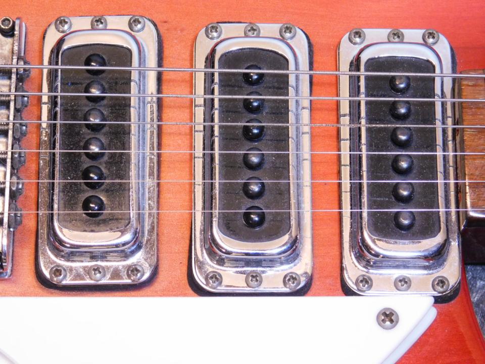 ピックアップセレクターはフロントピックアップ、すべてのピックアップ、リア+センターピックアップの3way