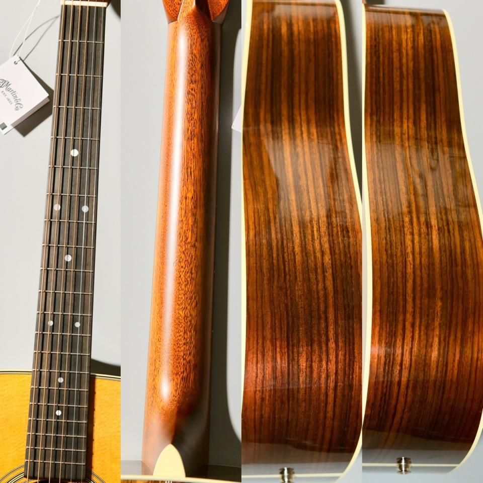 装飾面では、エボニー指板&ブリッジ、マザーオブパールのドットインレイ、アンティークホワイトのバインディング、オープンギアのニッケルペグなど、クラシックなStyle 28の意匠を踏襲。外観からも“これぞMartin”と感じさせる風格を備えています。