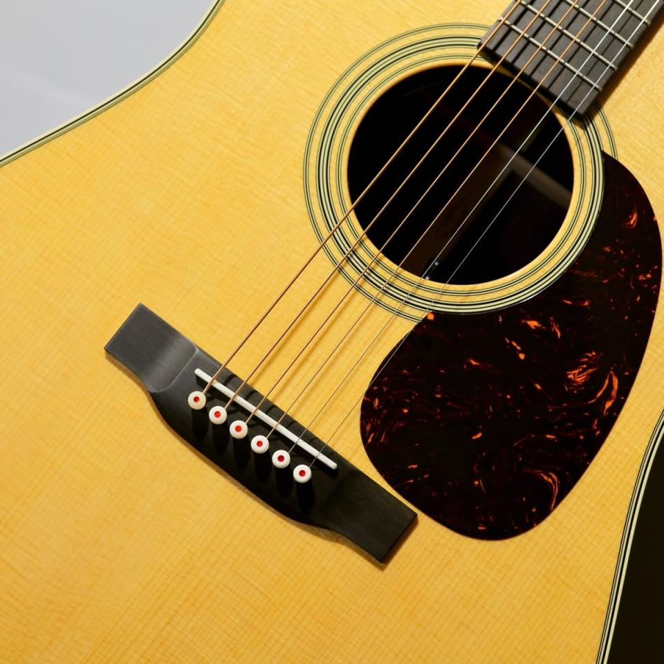 ボディにはスプルース単板トップ、サイド&バックにはイーストインディアン・ローズウッドを採用。これにより、芯のある低音ときらびやかな倍音成分が共存する、D-28ならではの王道トーンを生み出しています。ブレーシングにはフォワードシフトされたGEスキャロップドXブレイシングを採用し、より豊かな響きとサスティンを実現しています。