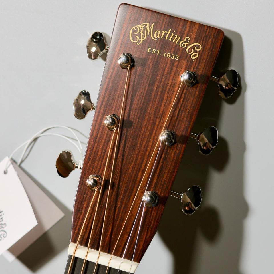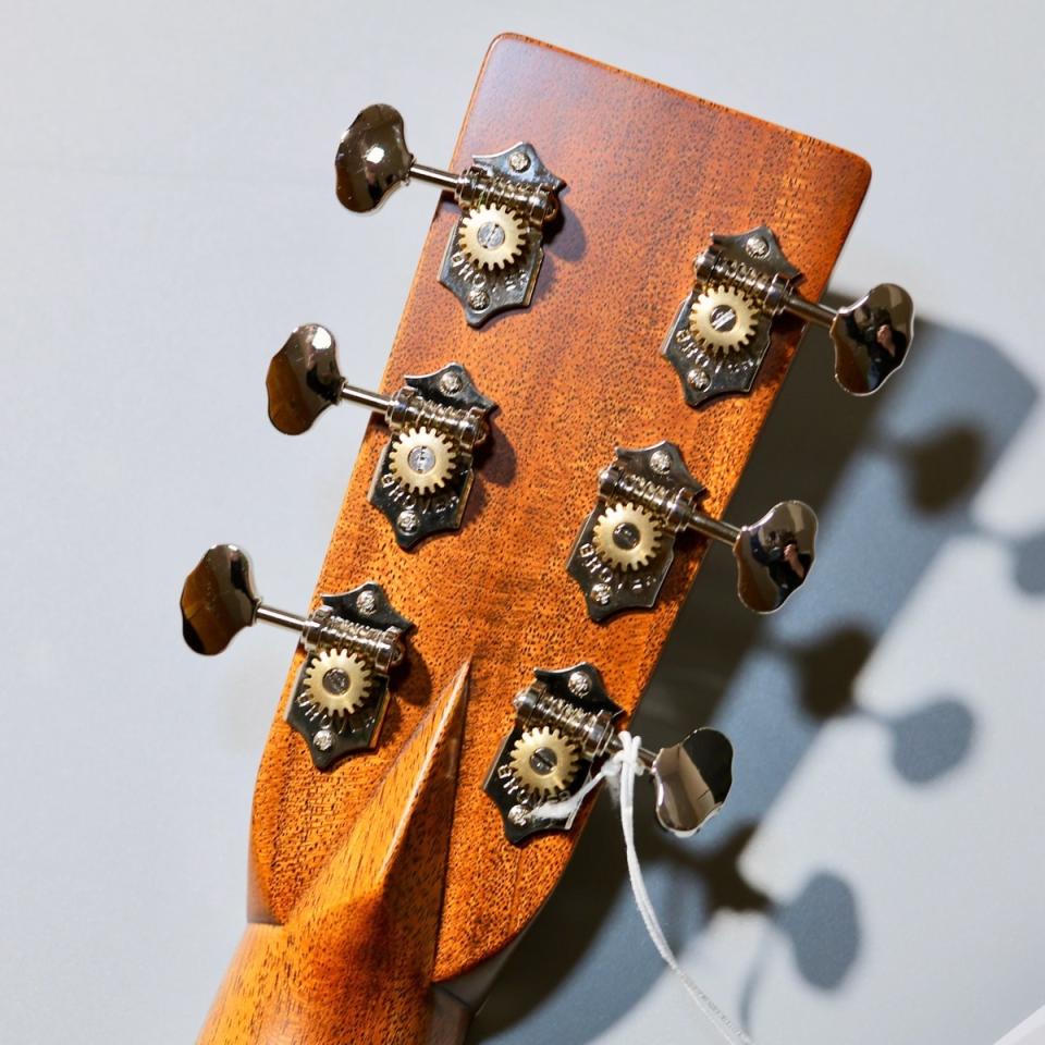 装飾面では、エボニー指板&ブリッジ、マザーオブパールのドットインレイ、アンティークホワイトのバインディング、オープンギアのニッケルペグなど、クラシックなStyle 28の意匠を踏襲。外観からも“これぞMartin”と感じさせる風格を備えています。