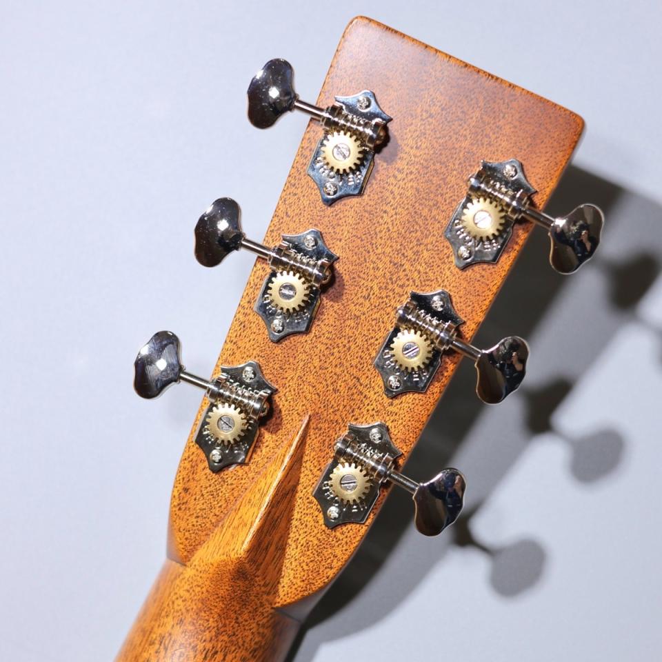 現行仕様ではスタンダードシリーズ全体のアップデートが施されており、OM-28もその恩恵を受けています。指板の薄型化やネック形状の見直しにより演奏性がさらに向上し、ブリッジやヒールの改良によって振動効率と操作性も高められています。ヴィンテージのトーンを志向しながらも、現代的な弾きやすさをしっかりと融合させた完成度の高さが際立ちます。