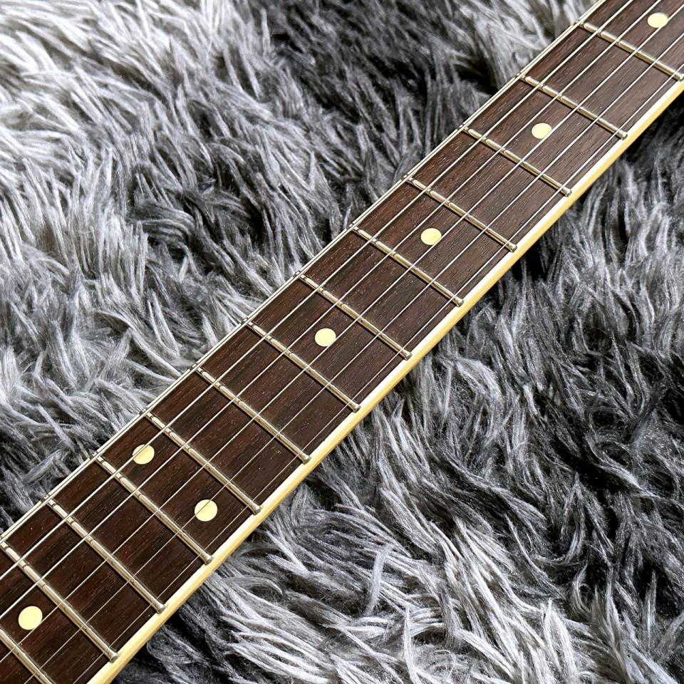 ボディはアルダー、ネックはローズ指板のメイプルネックと王道スペック。ネックバインディングを採用しており、Mid 60sのFender Jazzmasterを思わせるオーラに溢れております。組み込み精度も言わずもがなで、ギターの美味しい部分、ミッドがしっかりと出た豊かなトーンと文句のつけようがないプレイアビリティを実現しております。